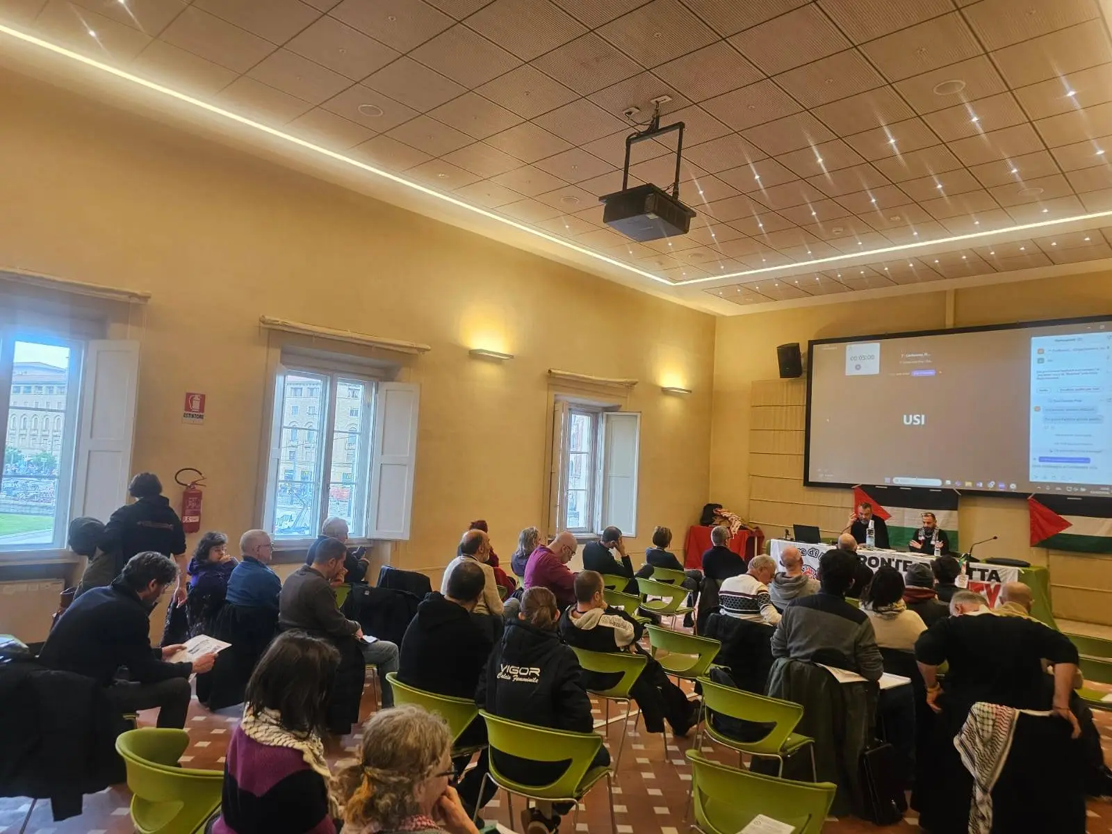 The introductory report was given by Daniele Cofani, a former Alitalia worker, who illustrated the repressive measures of the government on the basis of DDL 1660 (a law in the process of being passed). Next was Giovanna Lo Presti, the former national spokeswoman of Cub Scuola, who focused her report on the issue of working hours, reiterating the need for a reduction in working hours with equal pay and the abolition of night shifts, except for those jobs that cannot be stopped for reasons of social necessity. This was followed by a talk by Ivan Maddaluni, a railway worker, who gave an overview of trade union dynamics. Then Marzia Mecocci, a historical activist of the Housing Struggle Movement of Florence, illustrated the situation of high rents and gave an update on the ongoing struggles in the region (the Housing Struggle Movement of Florence is known for its daily interventions against evictions).