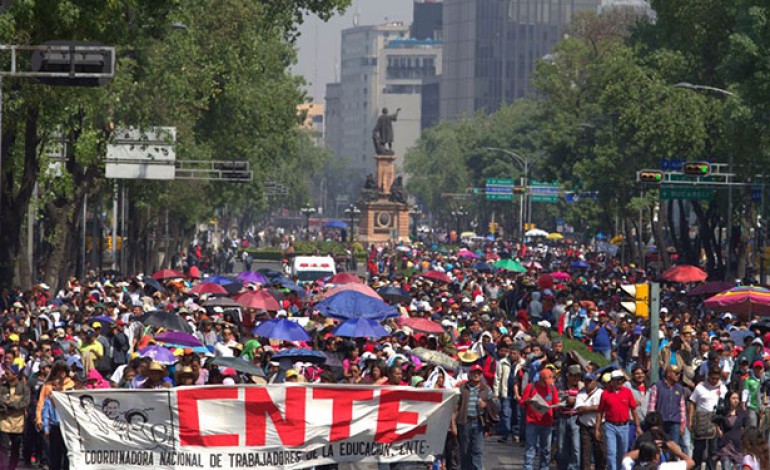 However, the imprisonment of our leaders, the dismissal of thousands of teachers, the armed provocations and police violence and evictions in several states against the CNTE only show the weakness and the ineptitude of the Peña Nieto government. Each blow from the government only increases the numbers of our pickets and the massive participation in our demonstrations and tours, the inner cohesion of the CNTE and the support coming from popular mobilizations and public figures of the cultural world. The struggle is still going one and alive!
