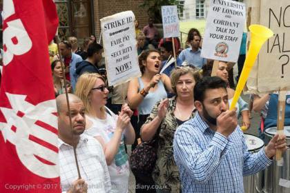 I don’t know if you are aware, but our security officers have been striking over the last 2 months in order to force the University of London to honour its commitments on pay – essentially as a result of broken promises they have had a 25% relative pay cut since 2011.