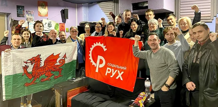Photo: A delegation from the British National Union of Miners meets with members of the Social Movement in Kyiv on Feb. 23, the day before the Russian invasion. (NUM photo)