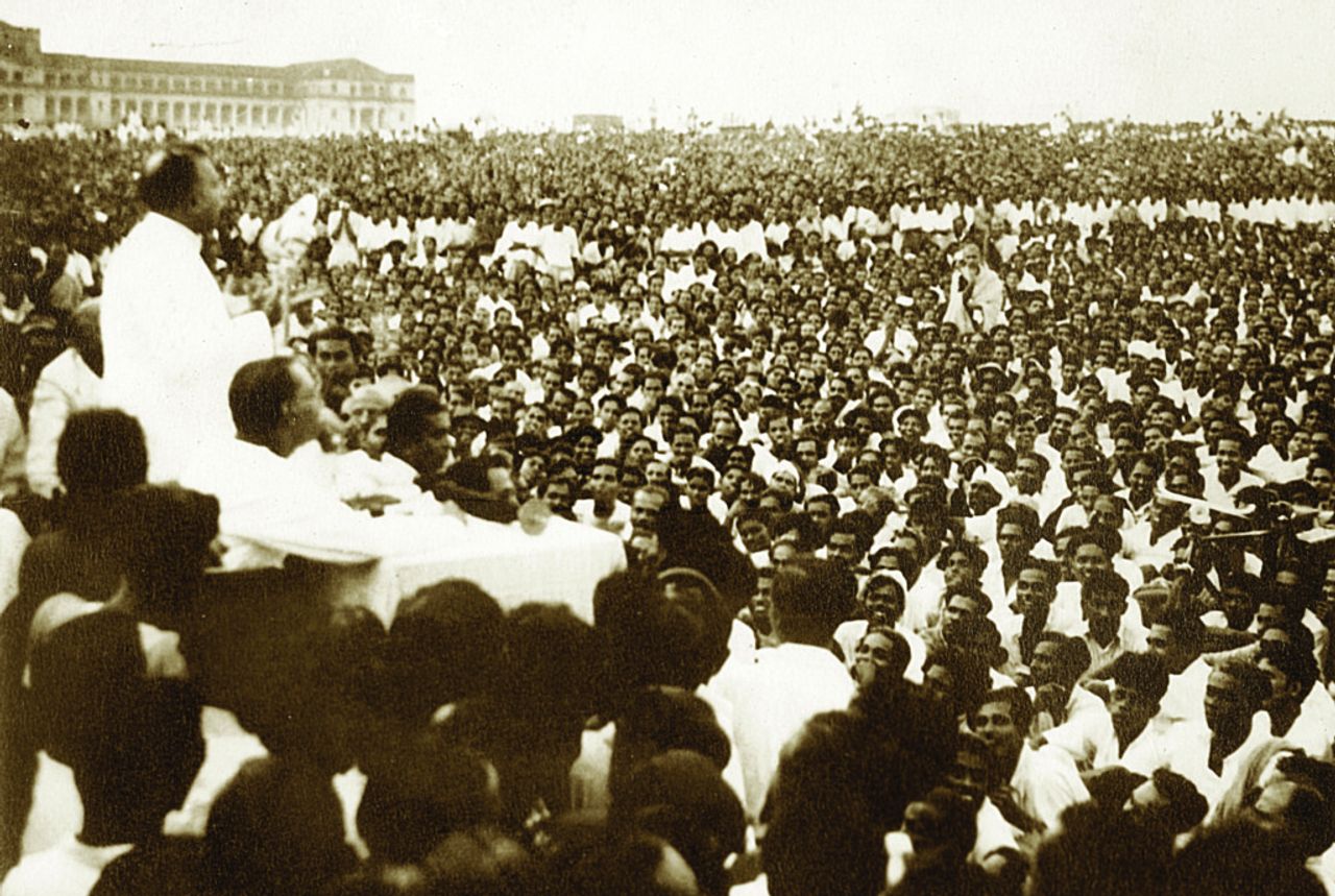 Photo: LSSP leader N.M. Perera addresses a rally in 1953.
