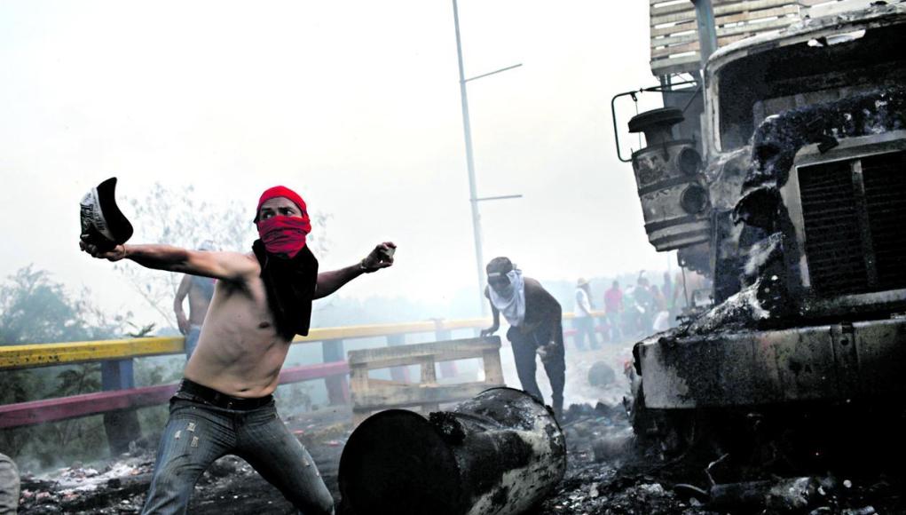 The “humanitarian aid” was limited to a few trucks in the Colombian frontier that were burned. In the Brazilian frontier, two trucks, a very small “aid”. One of them was delayed due to a flat tire. Guaidó assured the convoy would enter. He completely failed.