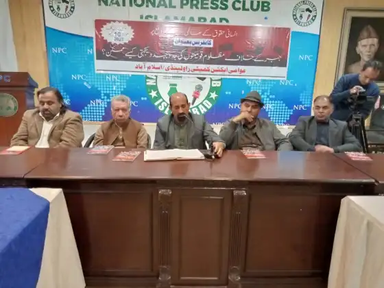 The Conference on Struggle and Solidarity Among the Oppressed Nationalities organized by the Jammu Kashmir Awami Action Committee Rawalpindi-Islamabad at the National Press Club, commemorated the International Human Rights Day in Pakistan on December 10, 2023.
