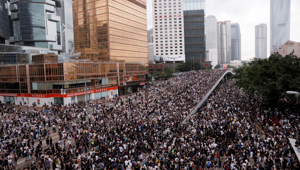 Protesters march along a road during a demonstration against a proposed extradition bill in Hong Kong, China June 12, 2019. REUTERS/Tyrone Siu