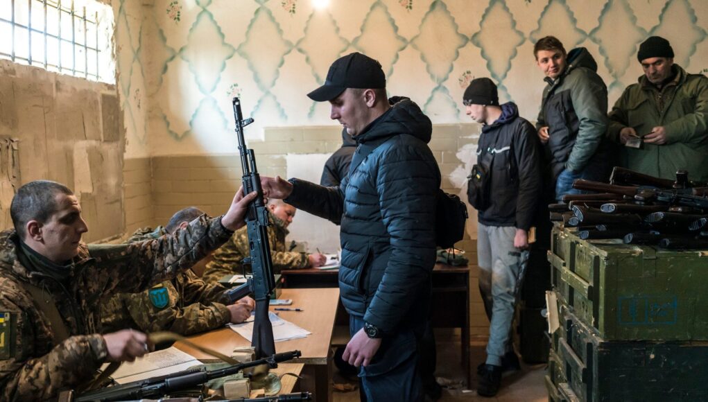 Militias formed by men and women in military uniforms, as in Kharkiv, carrying grenades and AK-47s or sandbags for the protection of buildings. At the headquarters of these Territorial Defence Forces, hundreds of people were waiting in line to join the civilian force. It is believed that 130,000 volunteers already carry out training sessions.