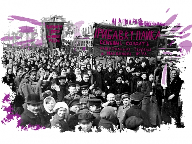 Hasta que en 1917 –día 23 de febrero en Rusia, 8 de marzo en el resto del mundo–, en medio de la miseria provocada por la guerra, las mujeres de Petrogrado hicieron una gran manifestación. Algunas eran trabajadoras, otras mujeres de soldados, y las principales consignas eran: “Pan para nuestros hijos” y “Traigan a nuestros maridos de vuelta de las trincheras”. Ese día estalló la huelga de las costureras y tejedoras de Petrogrado, aun sin el consentimiento del comité de tejedores de Rayón [distrito de la ciudad].